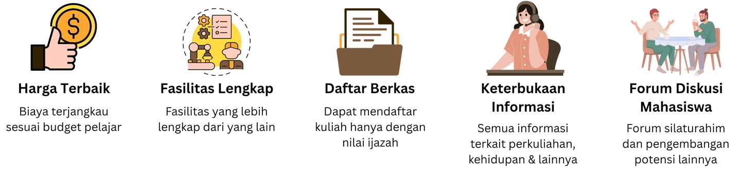 Kuliah impian kini makin dekat bersama Rumi Academic dengan biaya terjangkau, fasilitas lengkap, dan proses super praktis. Cukup daftar pakai ijazah, kamu bisa melangkah tanpa ribet. Semua informasi disampaikan jelas dan transparan, didukung Forum Diskusi Mahasiswa yang aktif serta Alumni Connect untuk insight nyata dan peluang masa depan. Simple, terpercaya, dan kekinian, saatnya wujudkan masa depanmu bareng Rumi Academic.
